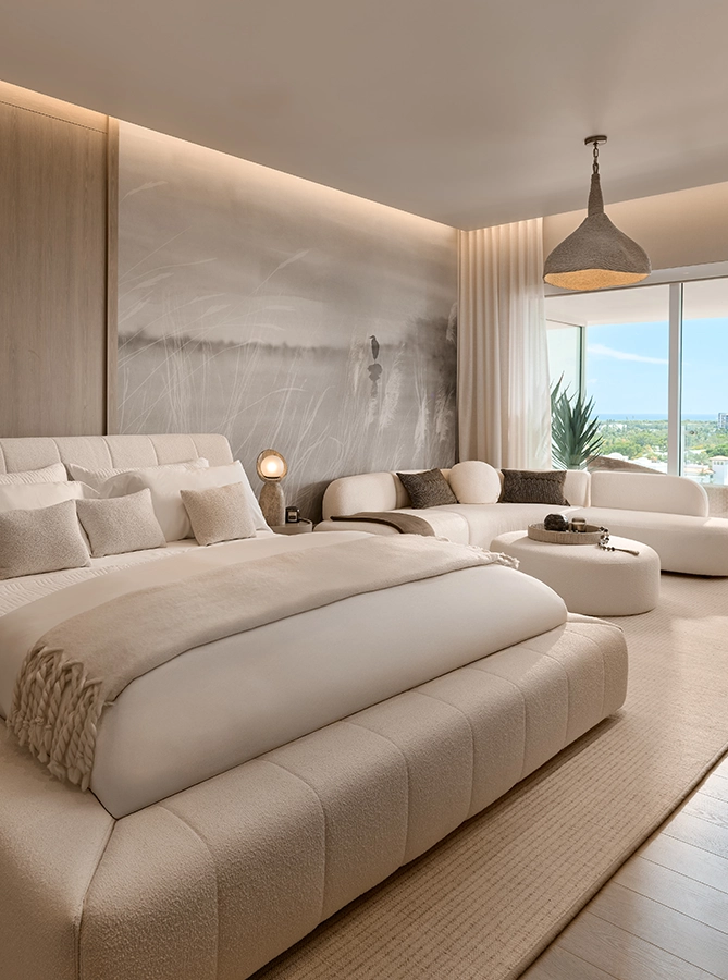 Light floods into your Indigo residence, highlighting soft tones and exquisite textures. Floor-to-ceiling windows and glass doors frame the vivid blues of sky and sea – and rich golden sunsets. Each spacious corner residence offers 3-5 bedrooms and stylish open-plan living. Bespoke details include private elevator access and a secured residential lobby.